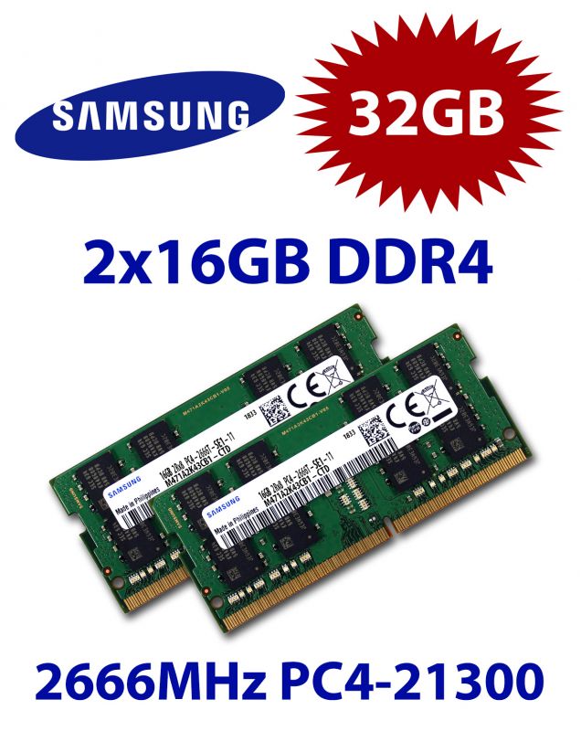 55,00 EUR pro Stück, 6,88 EUR pro GBSamsung 2x 16GB = 32GB KIT DDR4 RAM PC4-21300 2666MHz SO-DIMM