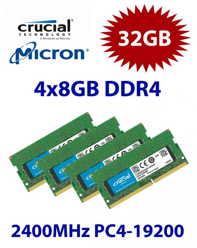 110,00 EUR pro Stück, 6,88 EUR pro GBMicron Crucial 4x 8GB = 32GB KIT DDR4 RAM PC4-19200 2400MHz SO-DIMM